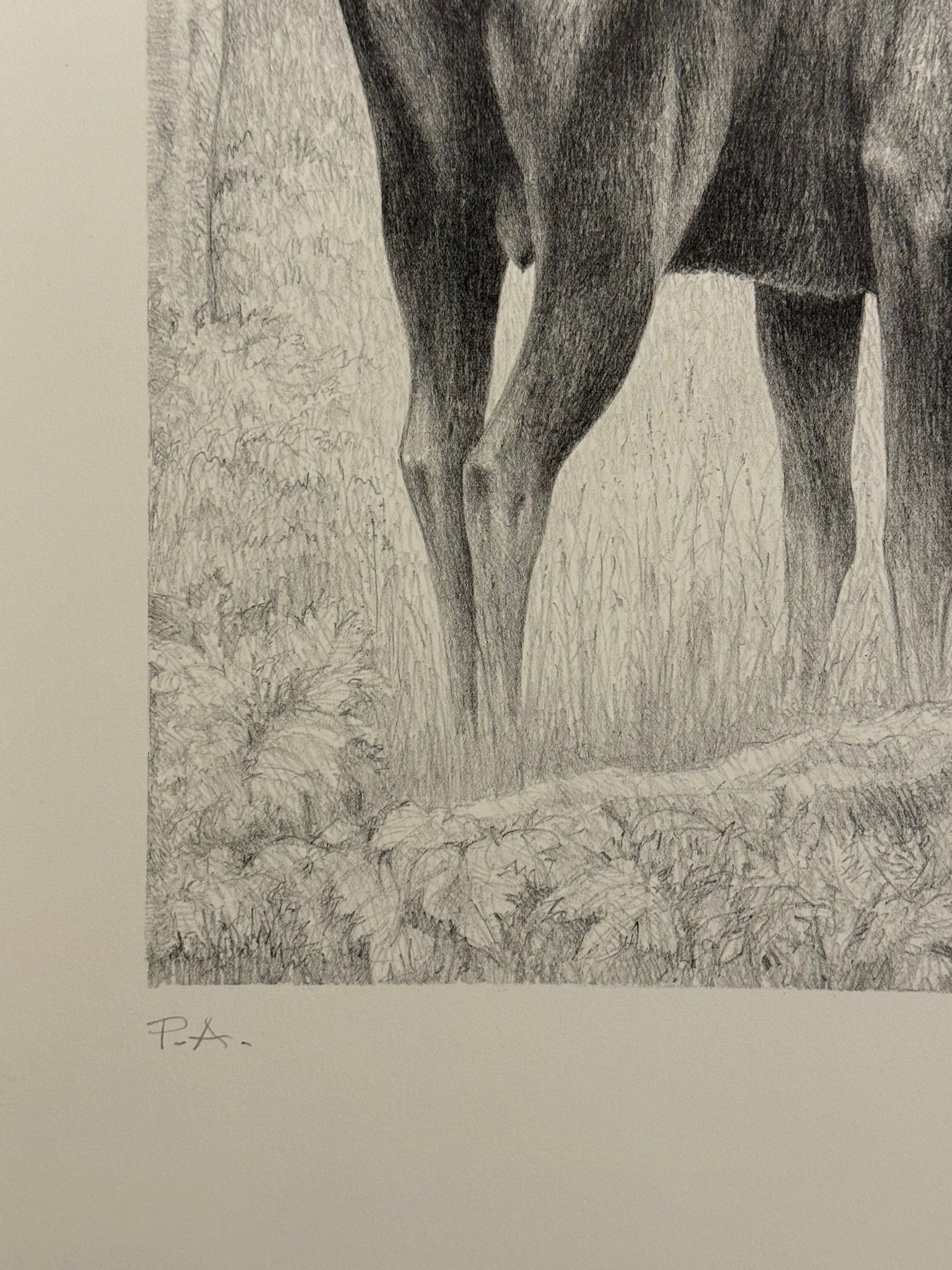 Litografia originale in bianco e nero. Firmata e numerata (7/10) a mano in basso; cm 50X68. Condizioni di conservazione perfette.