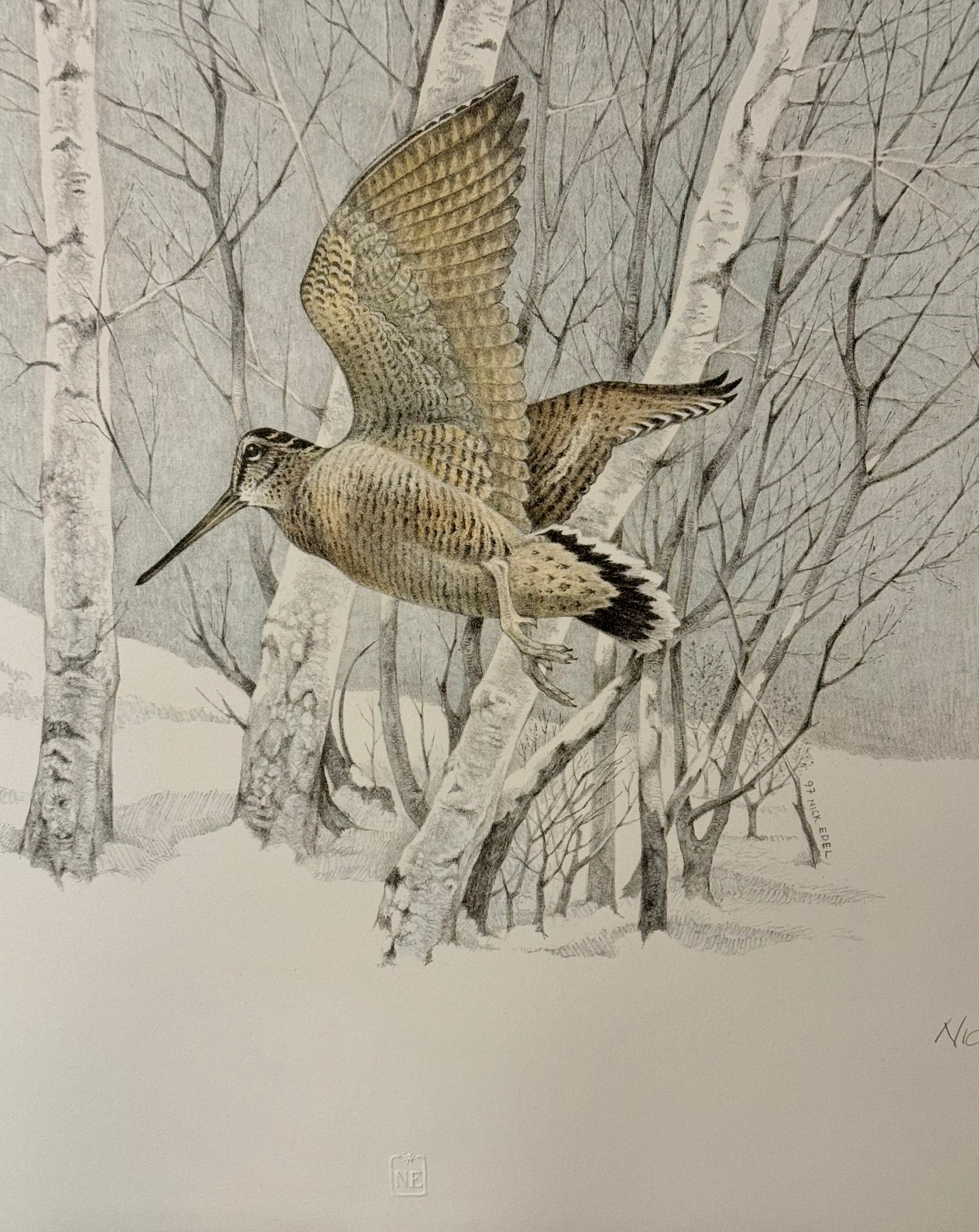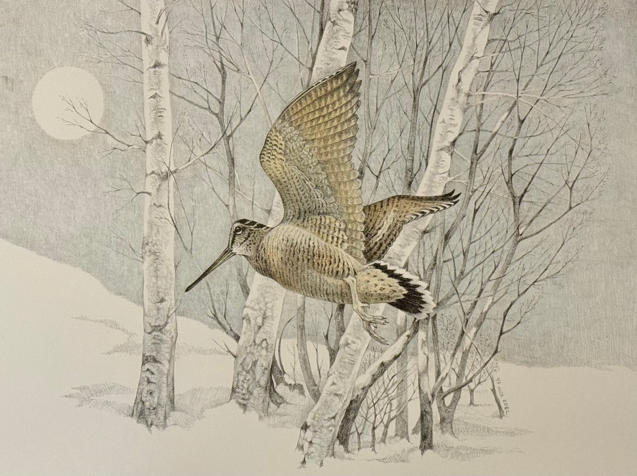 La beccaccia. 1997. Litografia originale su zinco a colori.