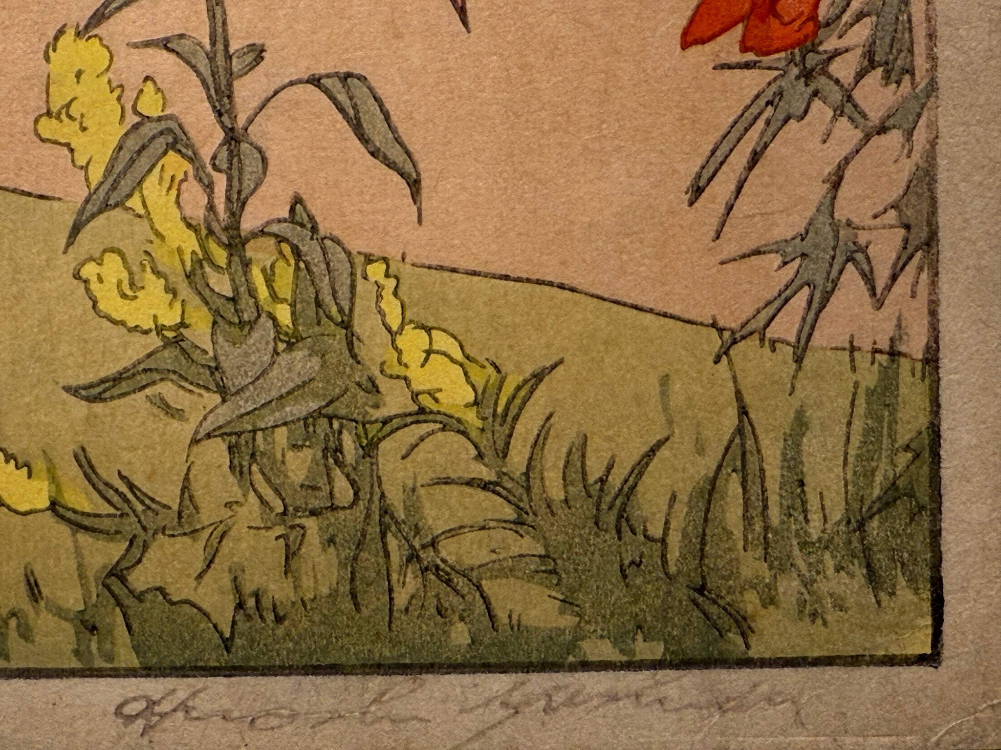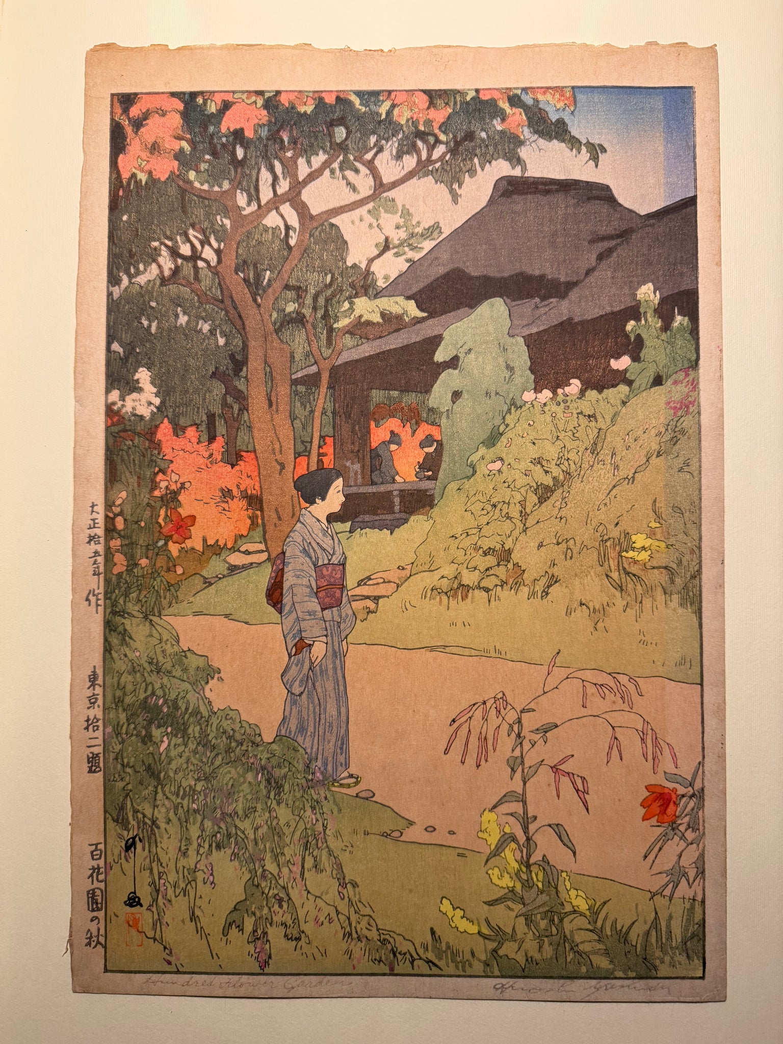 Hundred Flower Garden. 1926. Xilografia originale a colori, cm 26x38,5. Firmata e intitolata a mano in basso e in lastra. Splendida prova, chiara, fresca e perfettamente inchiostrata, dai colori perfettamente preservati. In eccellenti condizioni di conservazione.